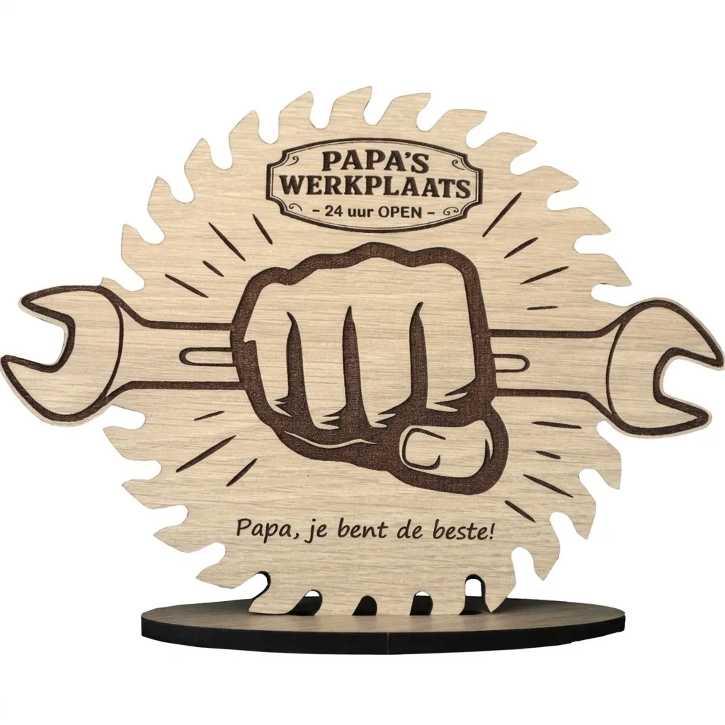 Met dit kwalitatieve decoratiestuk haal je niet alleen een leuk cadeau in huis, maar ook een blijvende herinnering. Een combinatie van functionaliteit, symboliek en stoere uitstraling – precies wat past bij elke vader die trots is op zijn werkplaats.